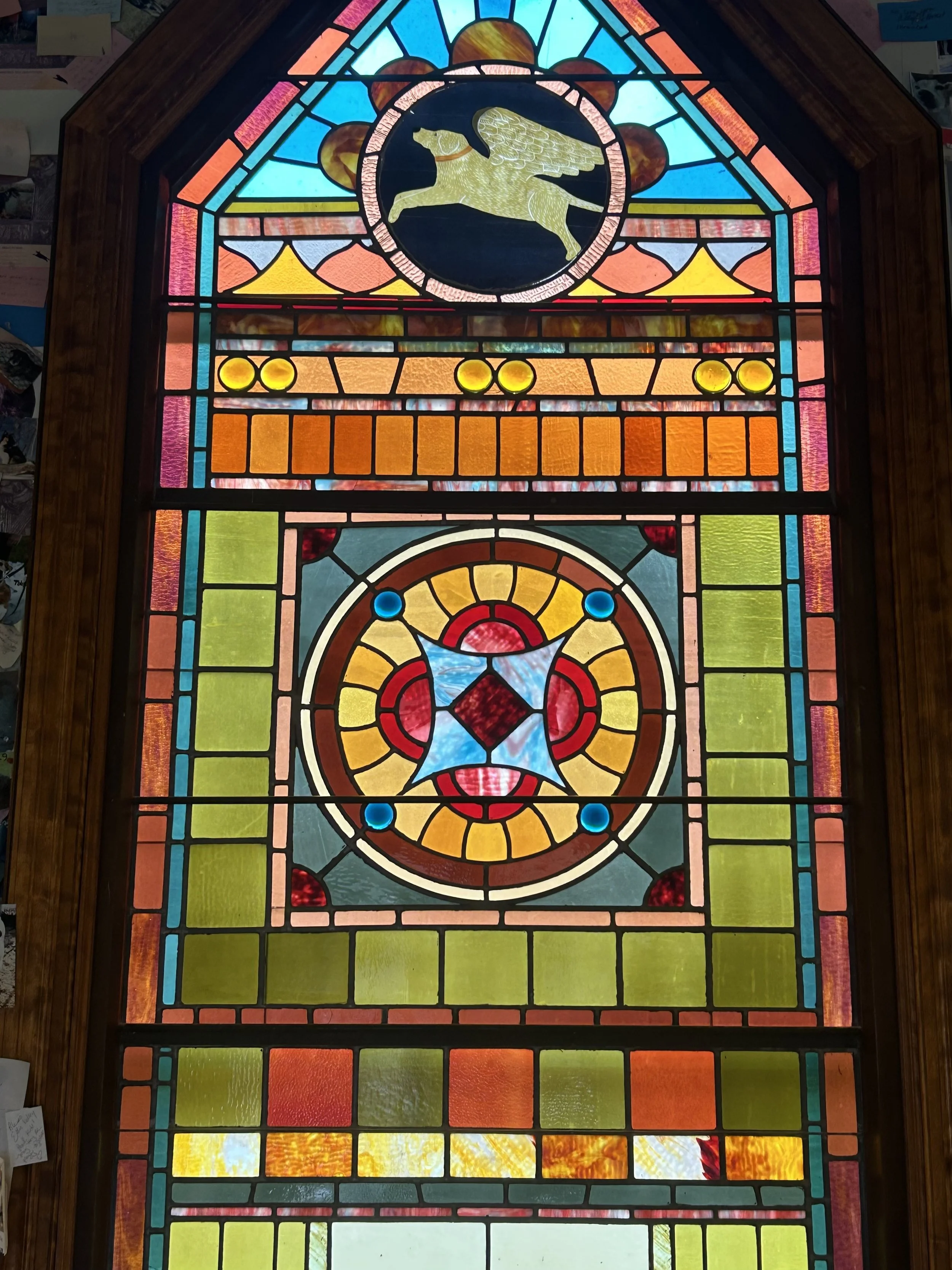 We walked along the trails, watched dogs playing in the field, and visited the chapel – the centerpiece of Dog Mountain. It’s designed with beautiful stained glass art, each depicting the gifts dogs give us – peace, play, joy, faith, trust, and friendship.