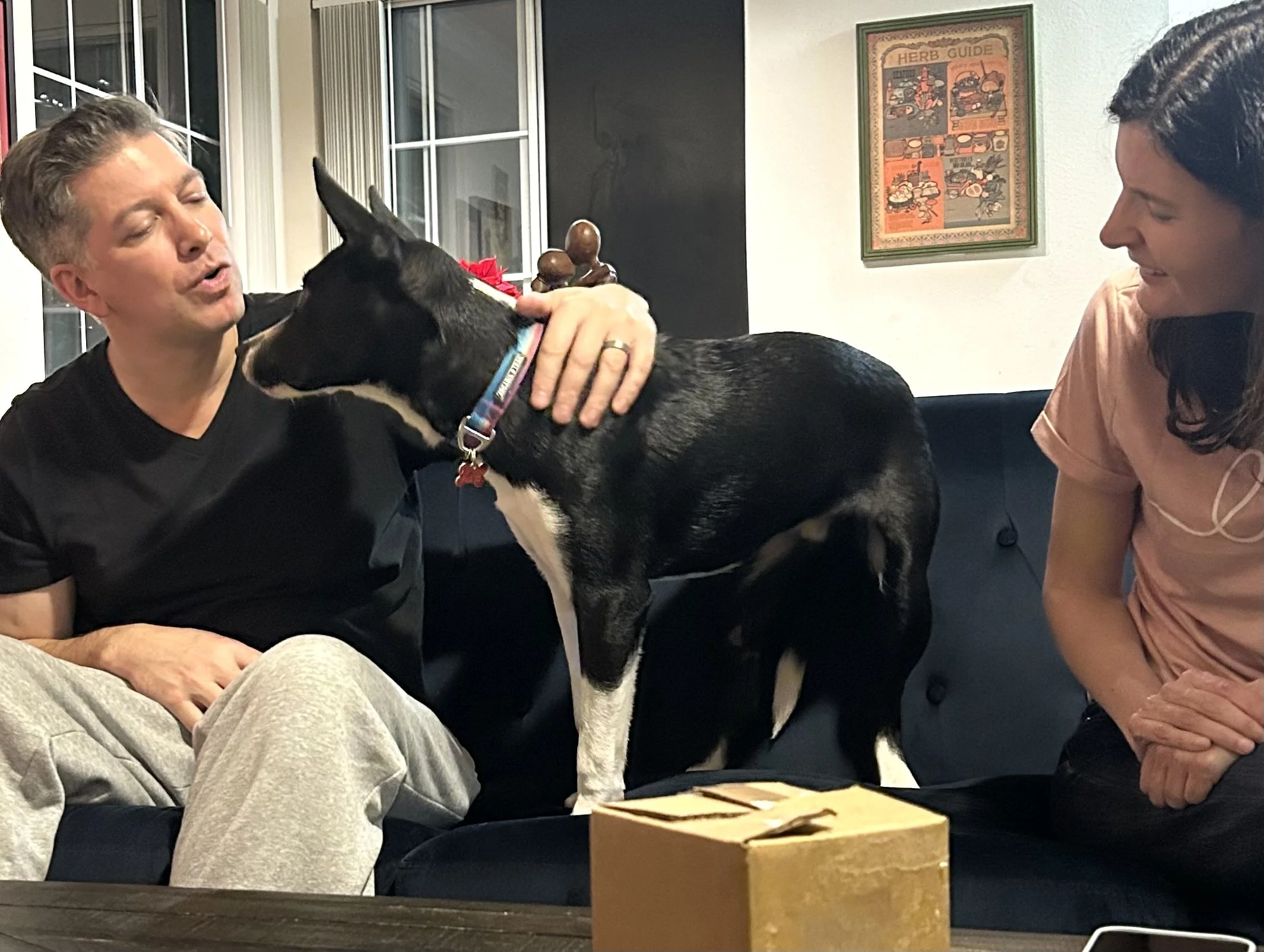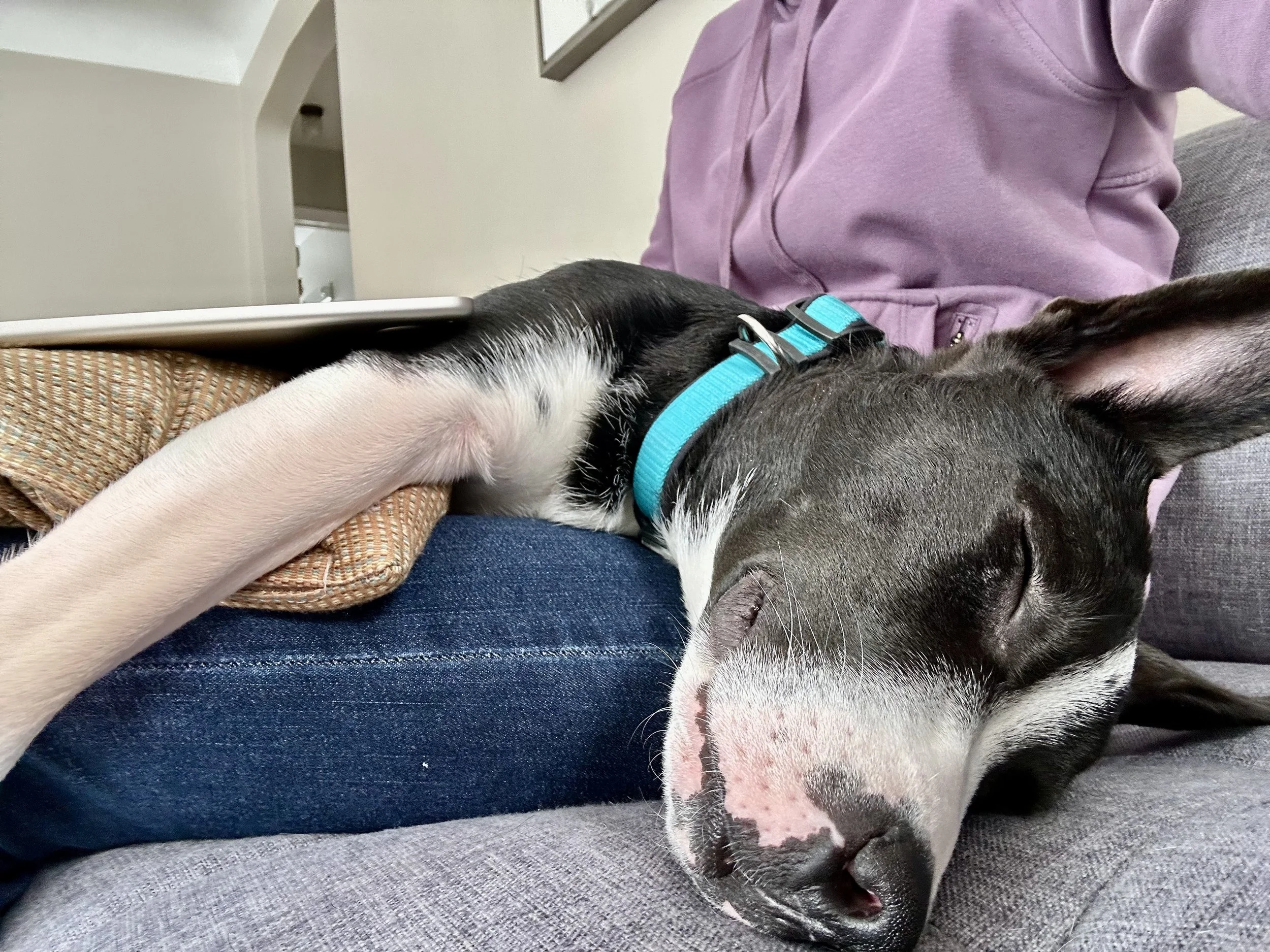 Rex quickly settled into his new life with us. He is every bit as special as we expected. He’s empathetic and loving. He bounds around the yard with joy, running alongside butterflies and play-bowing to crickets. He has world-class snuggling abilities.